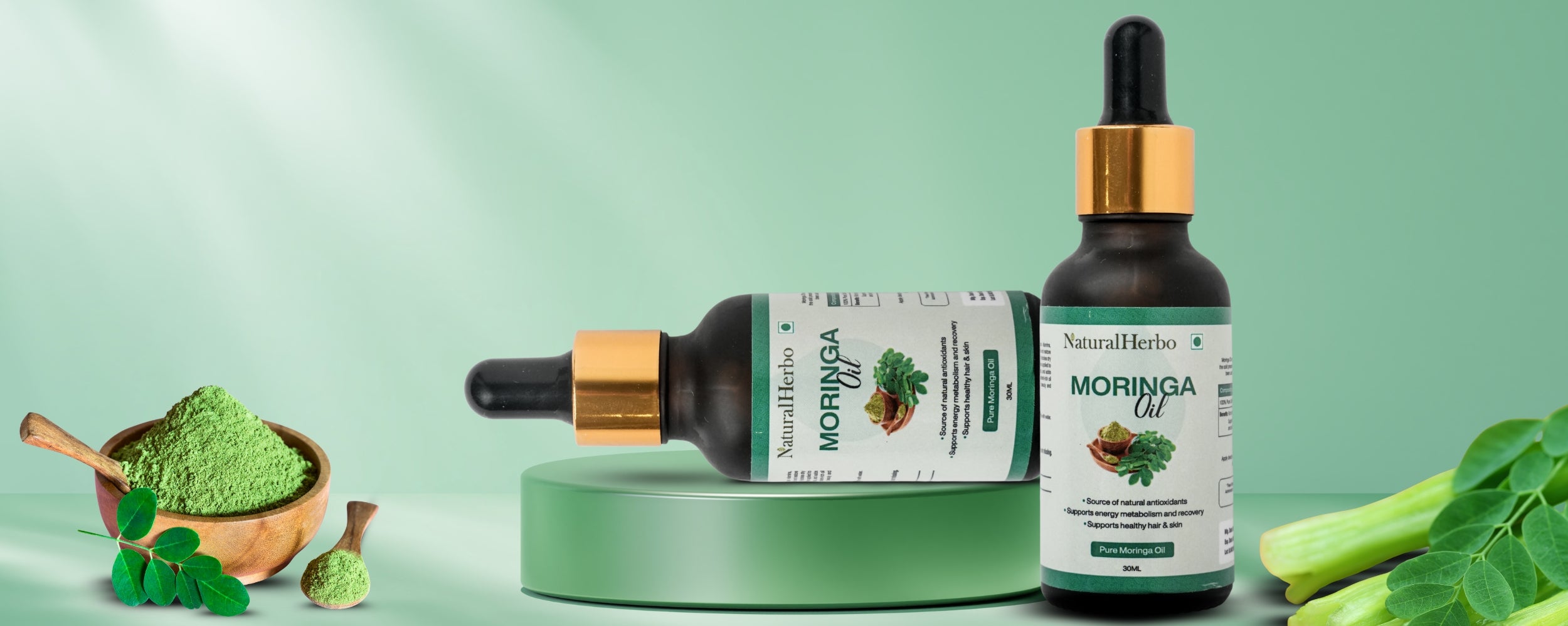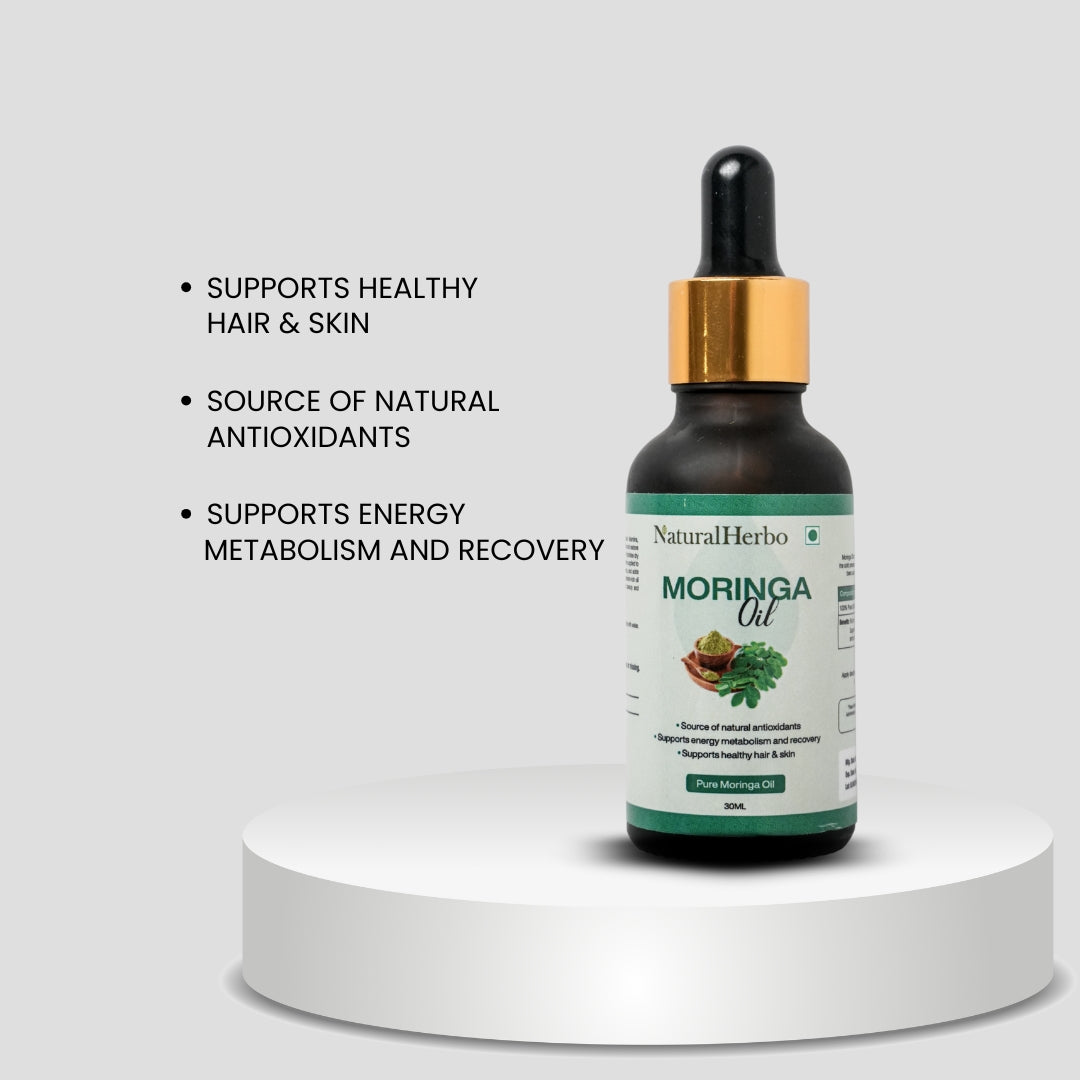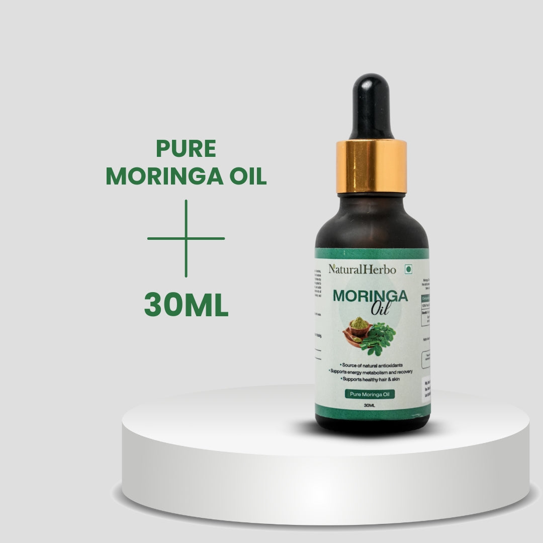 Cold-pressed from nutrient-rich Moringa seeds, NaturalHerbo Moringa Oil deeply hydrates and restores your skin and hair’s natural glow. Packed with antioxidants, vitamins, and fatty acids, it helps reduce dryness, improve elasticity, and support energy metabolism and recovery — offering complete nourishment from root to tip.